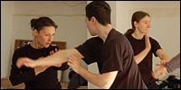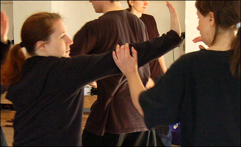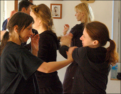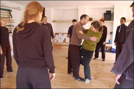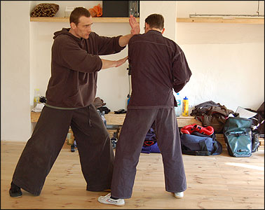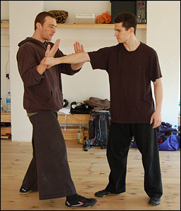 einzeln ohne Partner und trainierten dann mit Partner im Stand am unbeweglichen